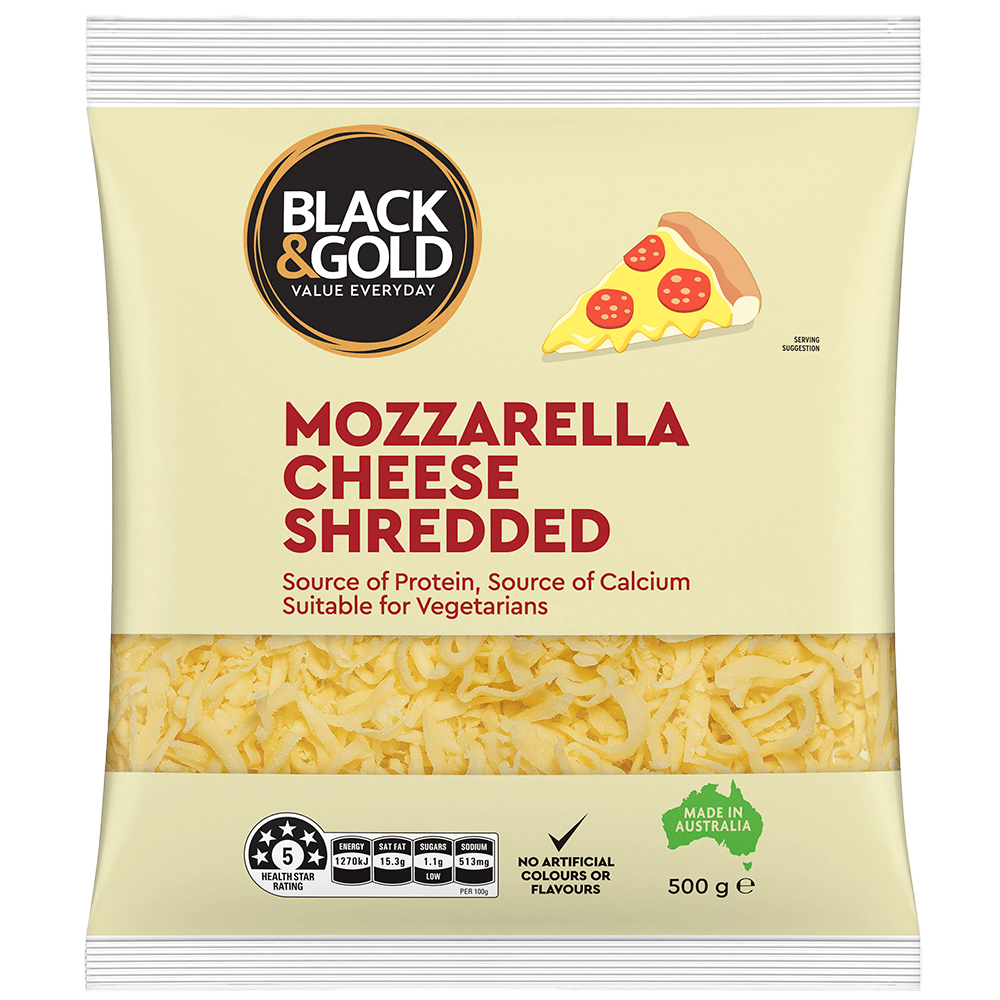 Black & Gold Shredded Mozzarella 500g Black & Gold Shredded Mozzarella 500g